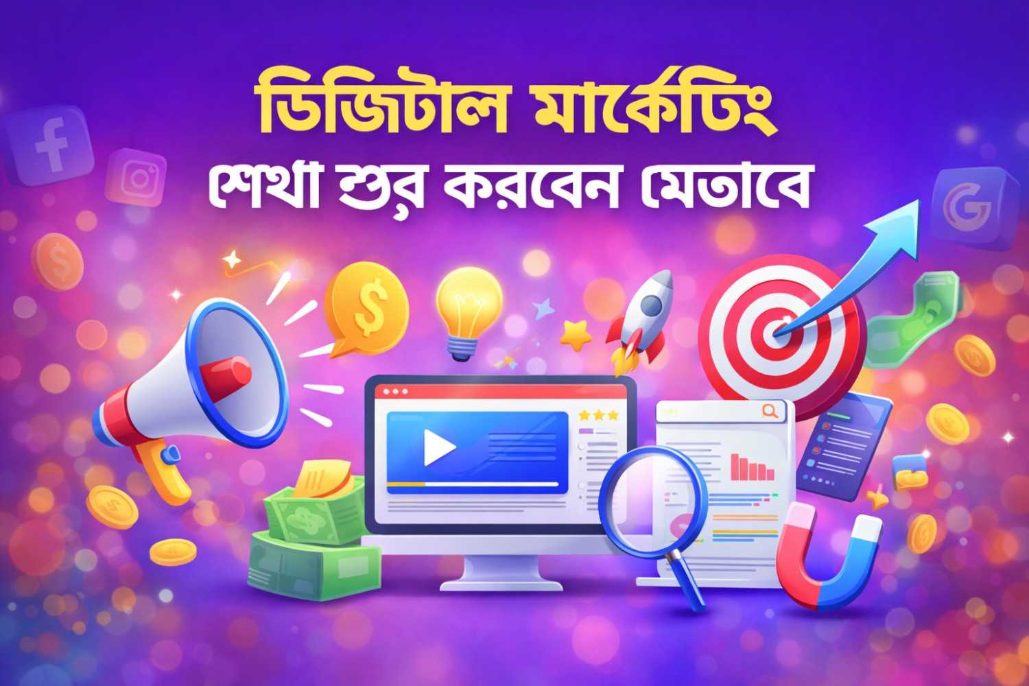 ৯️ ডিজিটাল মার্কেটিং শিখে আয় শুরু করার বাস্তব উপায়