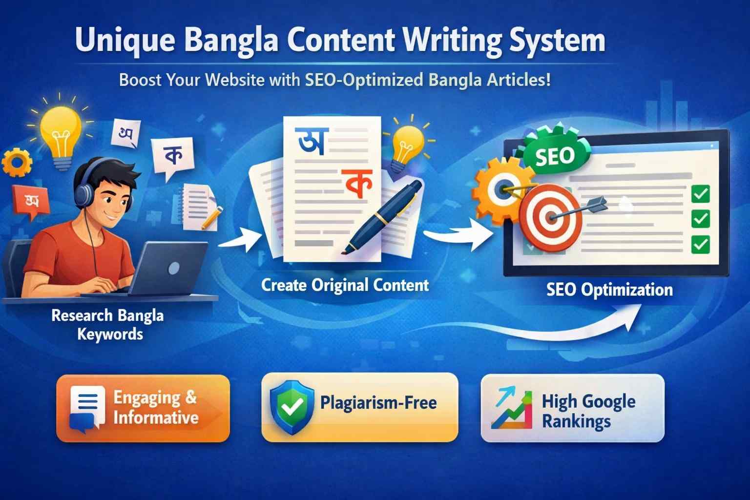 এই লেখায় আমি নিজের বাস্তব অভিজ্ঞতা, পরীক্ষিত সিস্টেম এবং প্র্যাকটিক্যাল কৌশল শেয়ার করেছি যেগুলো ব্যবহার করে নতুন ওয়েবসাইটে ধারাবাহিকভাবে ইউনিক বাংলা কনটেন্ট লেখা সম্ভব। আপনি যদি নতুন সাইটে গুগলের ট্রাস্ট তৈরি করতে চান এবং দীর্ঘমেয়াদে র্যাঙ্ক করতে চান, তাহলে এই গাইডটি আপনার জন্য একটি পরিষ্কার ও বাস্তব রোডম্যাপ হিসেবে কাজ করবে।