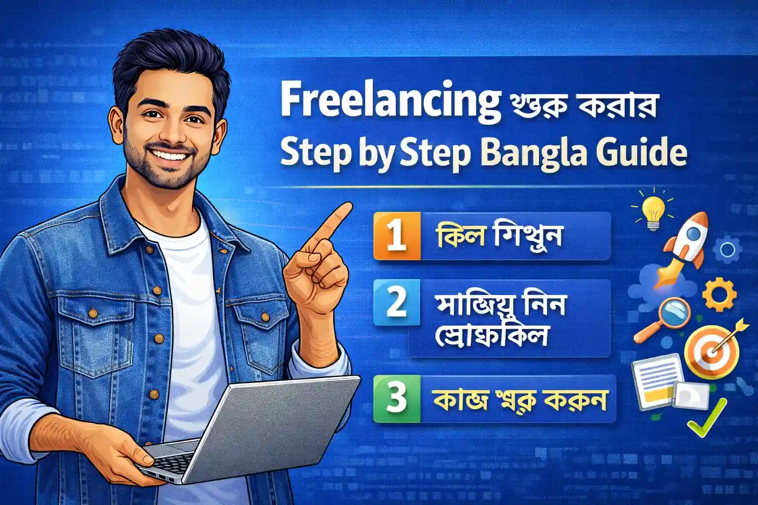 আমি যখন freelancing শব্দটা প্রথম শুনেছিলাম, তখন এটা আমার কাছে শুধু “অনলাইনে টাকা আয়” মনে হয়েছিল। কিন্তু সময়ের সাথে বুঝেছি, freelancing আসলে একটা পুরো ক্যারিয়ার যেখানে আমি আমার দক্ষতা, সময় আর চিন্তাকে ব্যবহার করে নিজের স্বাধীন ভবিষ্যৎ তৈরি করি। এই গাইডটা আমি লিখেছি তাদের জন্য, যারা সত্যি সত্যি freelancing শুরু করতে চায় কিন্তু জানে না কোথা থেকে শুরু করবে, কীভাবে এগোবে, আর কোন ভুলগুলো এড়িয়ে চলবে। এখানে আমি কোনো মোটিভেশনাল কথা নয়, বাস্তব অভিজ্ঞতা থেকে শেখা স্টেপ-বাই-স্টেপ প্রসেস শেয়ার করেছি স্কিল নির্বাচন থেকে শুরু করে ক্লায়েন্ট পাওয়া, কাজ ডেলিভারি, পেমেন্ট সেফটি আর আয় স্কেল করা পর্যন্ত। যদি তুমি এই গাইডটা মন দিয়ে অনুসরণ করো, তাহলে freelancing তোমার জন্য শুধু ইনকাম না, একটা সম্মানজনক, টেকসই এবং স্বাধীন ক্যারিয়ারে পরিণত হতে পারে।